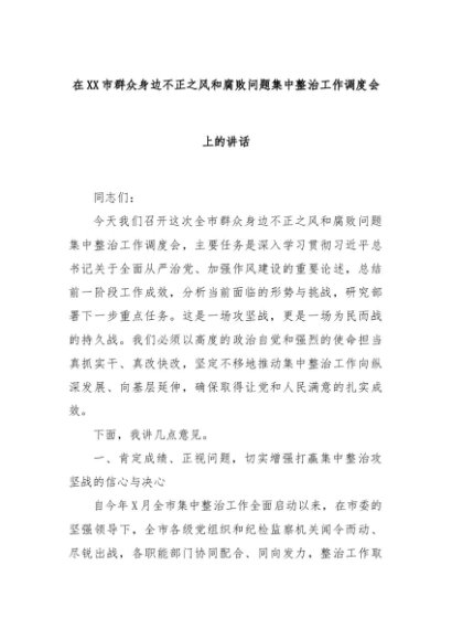 【七哥公文】2025年:在XX市群众身边不正之风和腐败问题集中整治工作调度会上的讲话+更多免费公文+VX:QiGeGongWen2024