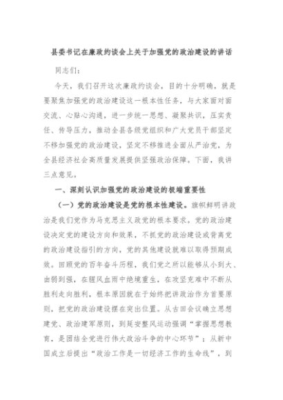 / 【七哥公文】2025年:县委书记在廉政约谈会上关于加强党的政治建设的讲话+更多免费公文+VX:QiGeGongWen2024