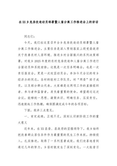 【七哥公文】2025年:在XX乡危房改造动员部署暨人畜分离工作推进会上的讲话+更多免费公文+VX:QiGeGongWen2024
