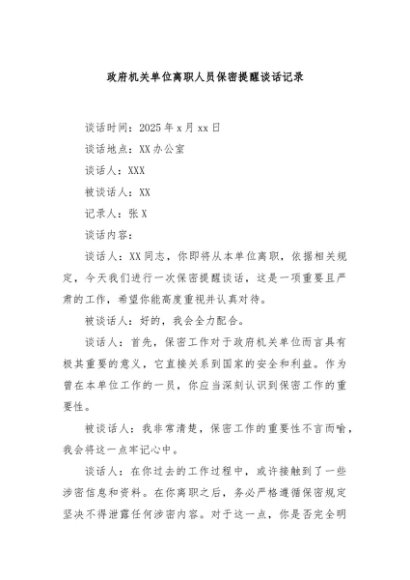 / 【七哥公文】2025年:政府机关单位离职人员保密提醒谈话记录+更多免费公文+VX:QiGeGongWen2024