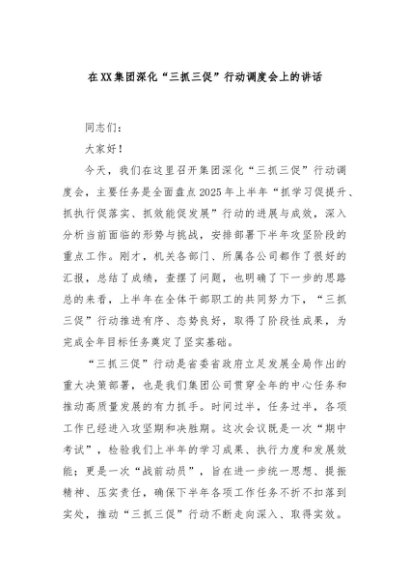 / 【七哥公文】2025年:在XX集团深化“三抓三促”行动调度会上的讲话+更多免费公文+VX:QiGeGongWen2024
