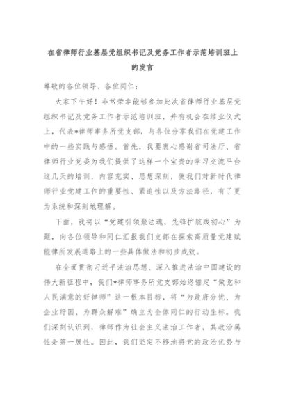 【七哥公文】2025年:在省律师行业基层党组织书记及党务工作者示范培训班上的发言+更多免费公文+VX:QiGeGongWen2024