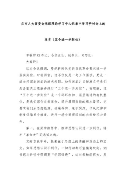 【七哥公文】2025年:在市人大常委会党组理论学习中心组集中学习研讨会上的发言(五个进一步到位)+更多免费公文+VX:QiGeGongWen2024