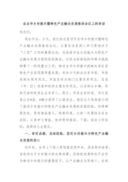 / 【七哥公文】2025年:在全市乡村振兴暨特色产业融合发展推进会议上的讲话+更多免费公文+VX:QiGeGongWen2024