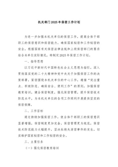 / 【七哥公文】2025年:机关部门2025年保密工作计划+更多免费公文+VX:QiGeGongWen2024
