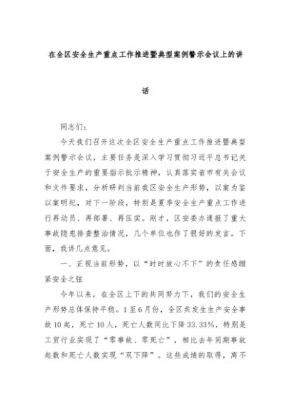 【七哥公文】2025年:在全区安全生产重点工作推进暨典型案例警示会议上的讲话+更多免费公文+VX:QiGeGongWen2024