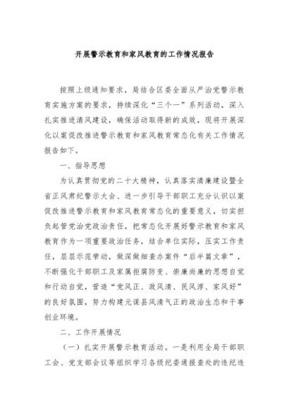 / 【七哥公文】2025年:开展警示教育和家风教育的工作情况报告+更多免费公文+VX:QiGeGongWen2024