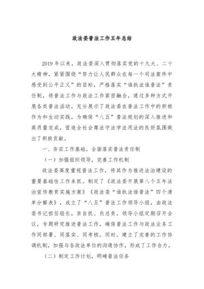 / 【七哥公文】2025年:政法委普法工作五年总结+更多免费公文+VX:QiGeGongWen2024