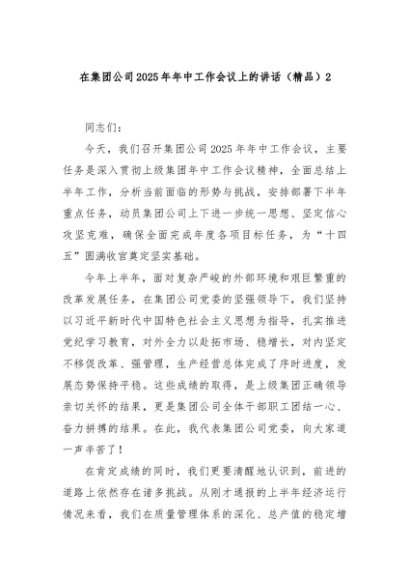 【七哥公文】2025年:在集团公司2025年年中工作会议上的讲话(精品)2+更多免费公文+VX:QiGeGongWen2024