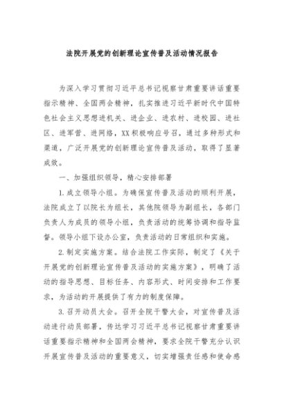 【七哥公文】2025年:法院开展党的创新理论宣传普及活动情况报告+更多免费公文+VX:QiGeGongWen2024
