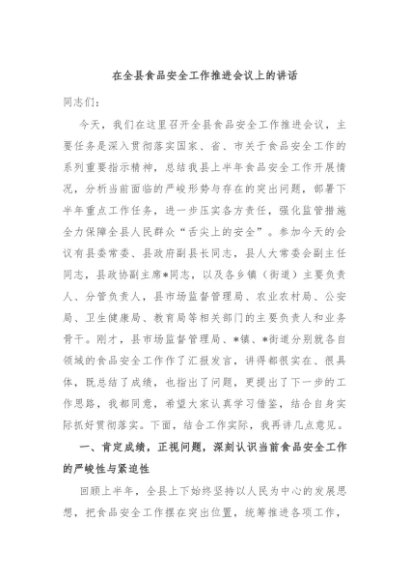 / 【七哥公文】2025年:在全县食品安全工作推进会议上的讲话+更多免费公文+VX:QiGeGongWen2024