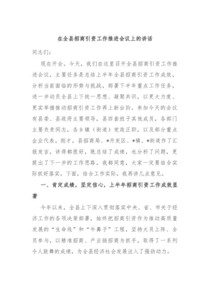 / 【七哥公文】2025年:在全县招商引资工作推进会议上的讲话+更多免费公文+VX:QiGeGongWen2024