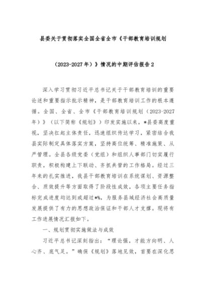 【七哥公文】2025年:县委关于贯彻落实全国全省全市《干部教育培训规划(2023-2027年)》情况的中期评估报告2+更多免费公文+VX:QiGeGongWen2024