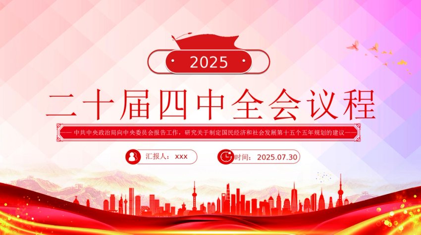 / 【七哥公文】2025年:二十届四中全会主要议程PPT模板+更多免费公文+VX:QiGeGongWen2024