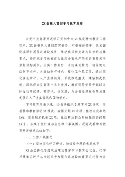 / 【七哥公文】2025年:XX县深入贯彻学习教育总结+更多免费公文+VX:QiGeGongWen2024