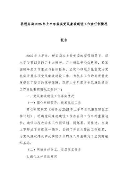 【七哥公文】2025年:县税务局2025年上半年落实党风廉政建设工作责任制情况报告+更多免费公文+VX:QiGeGongWen2024