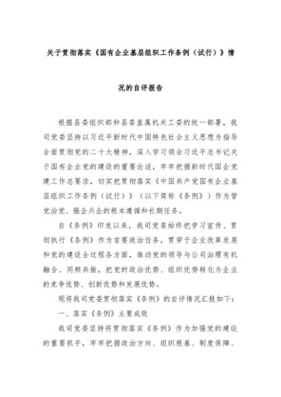 【七哥公文】2025年:关于贯彻落实《国有企业基层组织工作条例(试行)》情况的自评报告+更多免费公文+VX:QiGeGongWen2024
