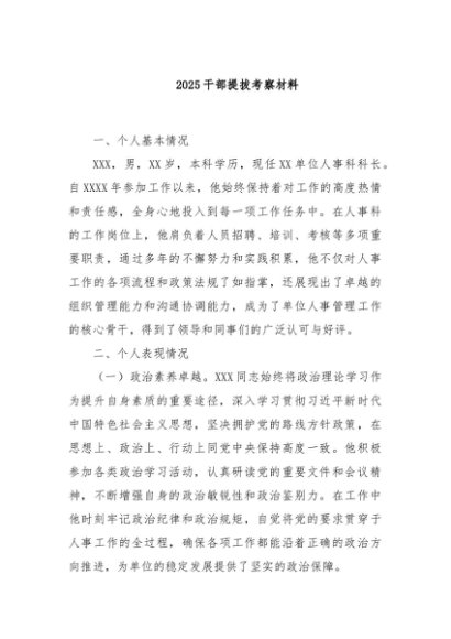 【七哥公文】2025年:2025干部提拔考察材料+更多免费公文+VX:QiGeGongWen2024