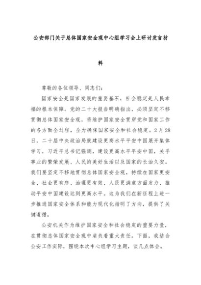 【七哥公文】2025年:公安部门关于总体国家安全观中心组学习会上研讨发言材料+更多免费公文+VX:QiGeGongWen2024