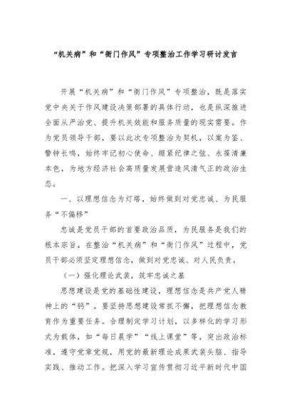 / 【七哥公文】2025年:“机关病”和“衙门作风”专项整治工作学习研讨发言+更多免费公文+VX:QiGeGongWen2024