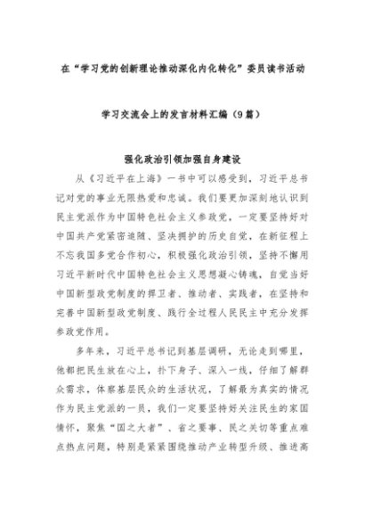 【七哥公文】2025年:(9篇)在“学习党的创新理论推动深化内化转化”委员读书活动学习交流会上的发言材料汇编+更多免费公文+VX:QiGeGongWen2024