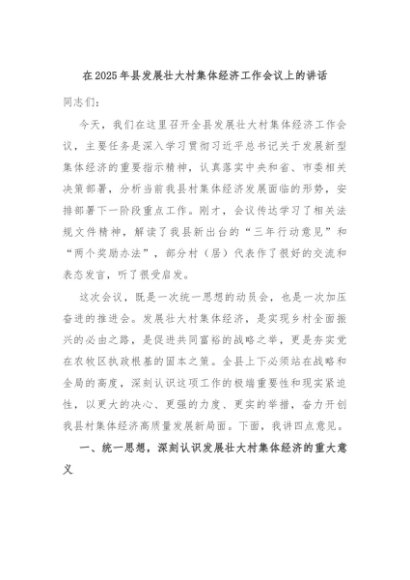 / 【七哥公文】2025年:在2025年县发展壮大村集体经济工作会议上的讲话+更多免费公文+VX:QiGeGongWen2024
