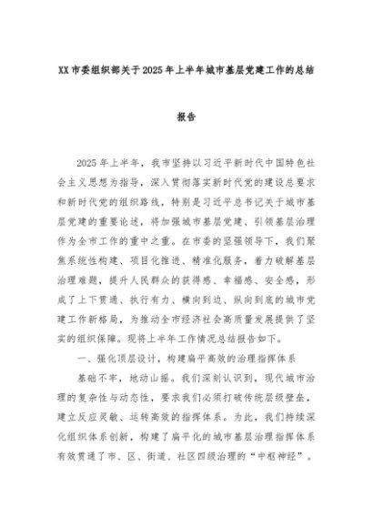 【七哥公文】2025年:XX市委组织部关于2025年上半年城市基层党建工作的总结报告+更多免费公文+VX:QiGeGongWen2024