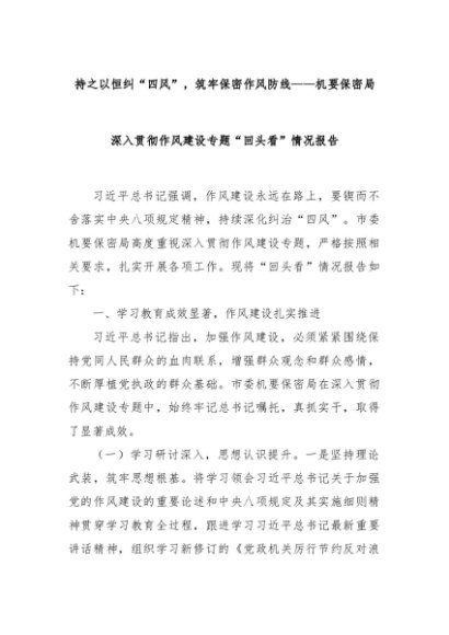 【七哥公文】2025年:持之以恒纠“四风”,筑牢保密作风防线——机要保密局深入贯彻作风建设专题“回头看”情况报告+更多免费公文+VX:QiGeGongWen2024