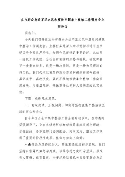 【七哥公文】2025年:在市群众身边不正之风和腐败问题集中整治工作调度会上的讲话+更多免费公文+VX:QiGeGongWen2024
