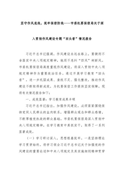 【七哥公文】2025年:坚守作风底线,筑牢保密防线——市委机要保密局关于深入贯彻作风建设专题“回头看”情况报告+更多免费公文+VX:QiGeGongWen2024