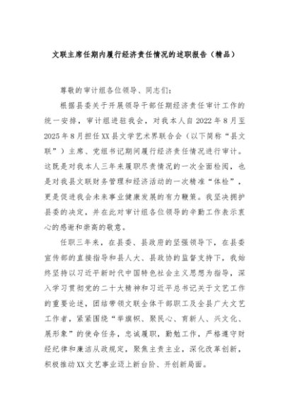 / 【七哥公文】2025年:文联主席任期内履行经济责任情况的述职报告(精品)+更多免费公文+VX:QiGeGongWen2024