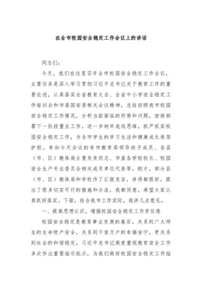/ 【七哥公文】2025年:在全市校园安全稳定工作会议上的讲话+更多免费公文+VX:QiGeGongWen2024