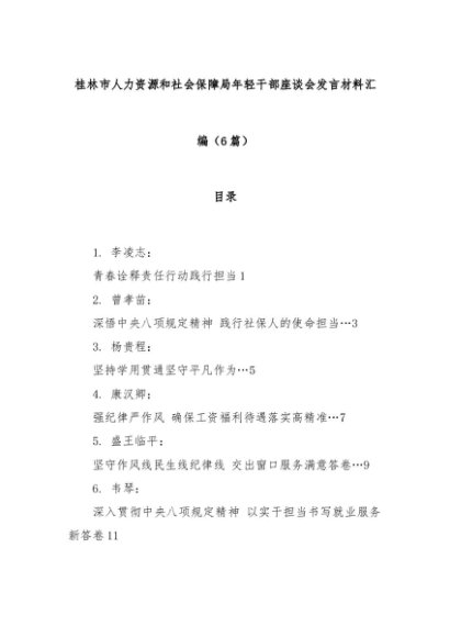 【七哥公文】2025年:(6篇)桂林市人力资源和社会保障局年轻干部座谈会发言材料汇编+更多免费公文+VX:QiGeGongWen2024
