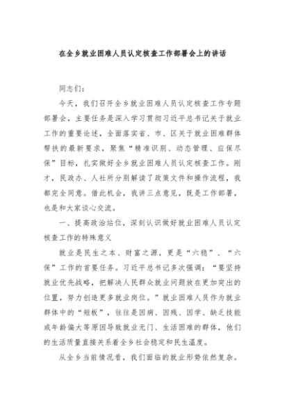 / 【七哥公文】2025年:在全乡就业困难人员认定核查工作部署会上的讲话+更多免费公文+VX:QiGeGongWen2024