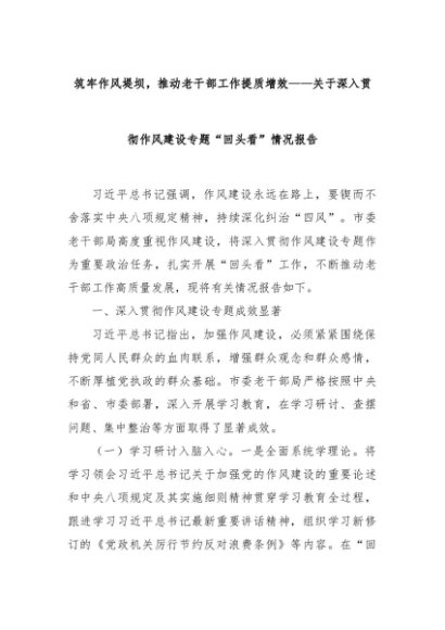 【七哥公文】2025年:筑牢作风堤坝,推动老干部工作提质增效——关于深入贯彻作风建设专题“回头看”情况报告+更多免费公文+VX:QiGeGongWen2024