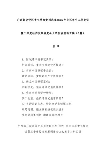 【七哥公文】2025年:(5篇)广西部分设区市主要负责同志在2025年全区年中工作会议暨三季度经济发展调度会上的发言材料汇编+更多免费公文+VX:QiGeGongWen2024