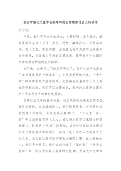 / 【七哥公文】2025年:在全市强化文旅市场秩序和安全管理推进会上的讲话+更多免费公文+VX:QiGeGongWen2024