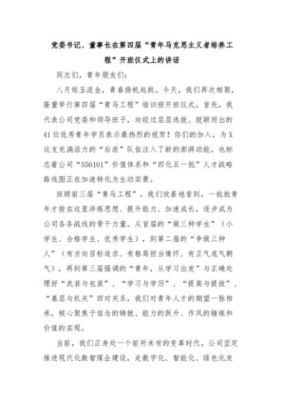 【七哥公文】2025年:党委书记、董事长在第四届“青年马克思主义者培养工程”开班仪式上的讲话+更多免费公文+VX:QiGeGongWen2024