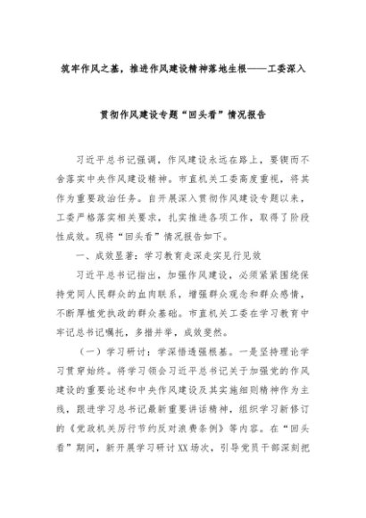 【七哥公文】2025年:筑牢作风之基,推进作风建设精神落地生根——工委深入贯彻作风建设专题“回头看”情况报告+更多免费公文+VX:QiGeGongWen2024
