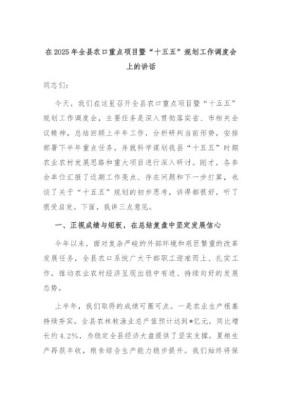 【七哥公文】2025年:在2025年全县农口重点项目暨“十五五”规划工作调度会上的讲话+更多免费公文+VX:QiGeGongWen2024