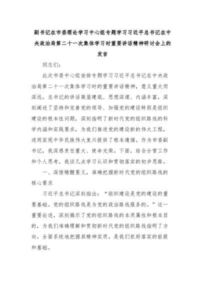 【七哥公文】2025年:副书记在市委理论学习中心组专题学习总书记在中央政治局第二十一次集体学习时重要讲话精神研讨会上的发言+更多免费公文+VX:QiGeGongWen2024