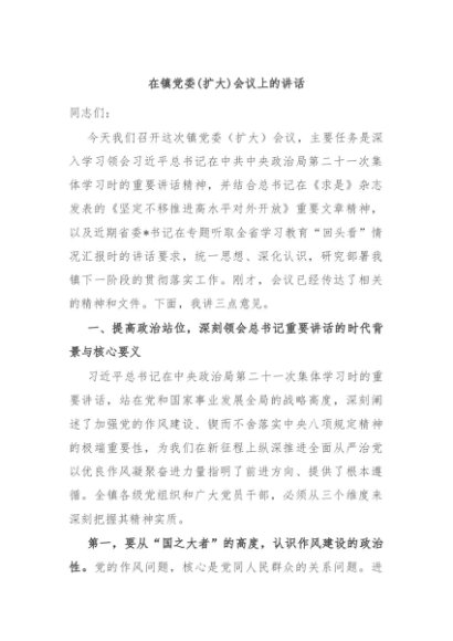 【七哥公文】2025年:在镇党委(扩大)会议上的讲话+更多免费公文+VX:QiGeGongWen2024