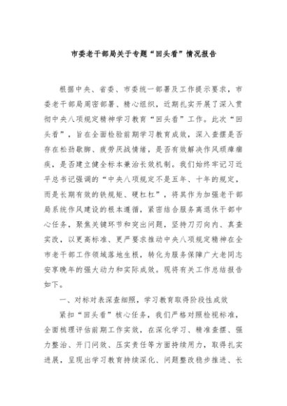 / 【七哥公文】2025年:市委老干部局关于专题“回头看”情况报告+更多免费公文+VX:QiGeGongWen2024