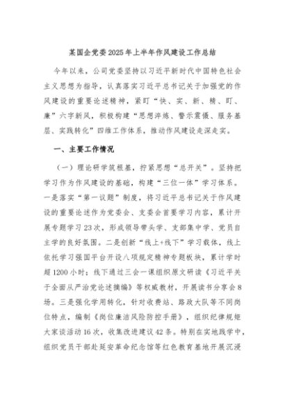 / 【七哥公文】2025年:某国企党委2025年上半年作风建设工作总结+更多免费公文+VX:QiGeGongWen2024