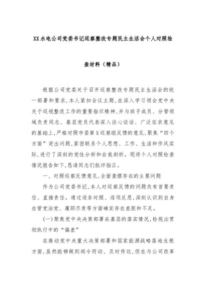 【七哥公文】2025年:XX水电公司党委书记巡察整改专题民主生活会个人对照检查材料(精品)+更多免费公文+VX:QiGeGongWen2024
