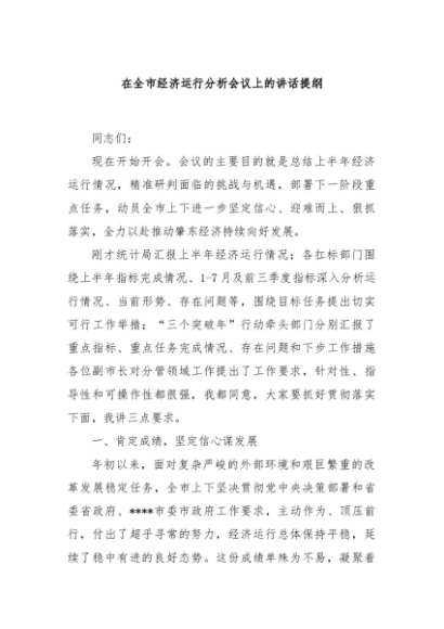 / 【七哥公文】2025年:在全市经济运行分析会议上的讲话提纲+更多免费公文+VX:QiGeGongWen2024