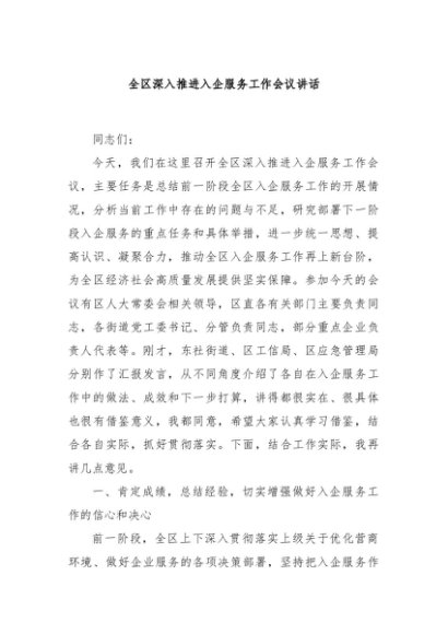 【七哥公文】2025年:全区深入推进入企服务工作会议讲话+更多免费公文+VX:QiGeGongWen2024