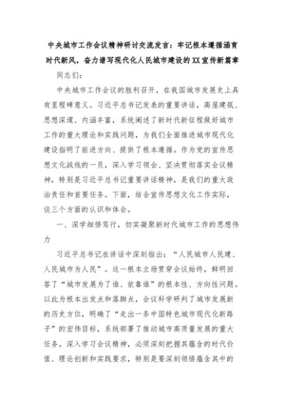 【七哥公文】2025年:中央城市工作会议精神研讨交流发言:牢记根本遵循涵育时代新风,奋力谱写现代化人民城市建设的XX宣传新篇章+更多免费公文+VX:QiGeGongWen2024