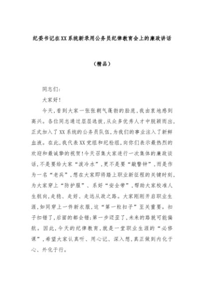【七哥公文】2025年:纪委书记在XX系统新录用公务员纪律教育会上的廉政讲话(精品)+更多免费公文+VX:QiGeGongWen2024