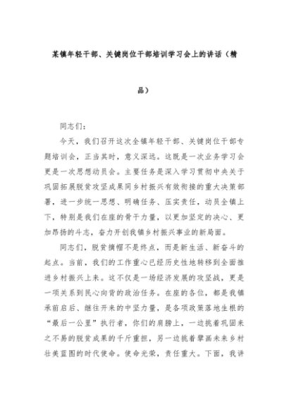 【七哥公文】2025年:某镇年轻干部、关键岗位干部培训学习会上的讲话(精品)+更多免费公文+VX:QiGeGongWen2024